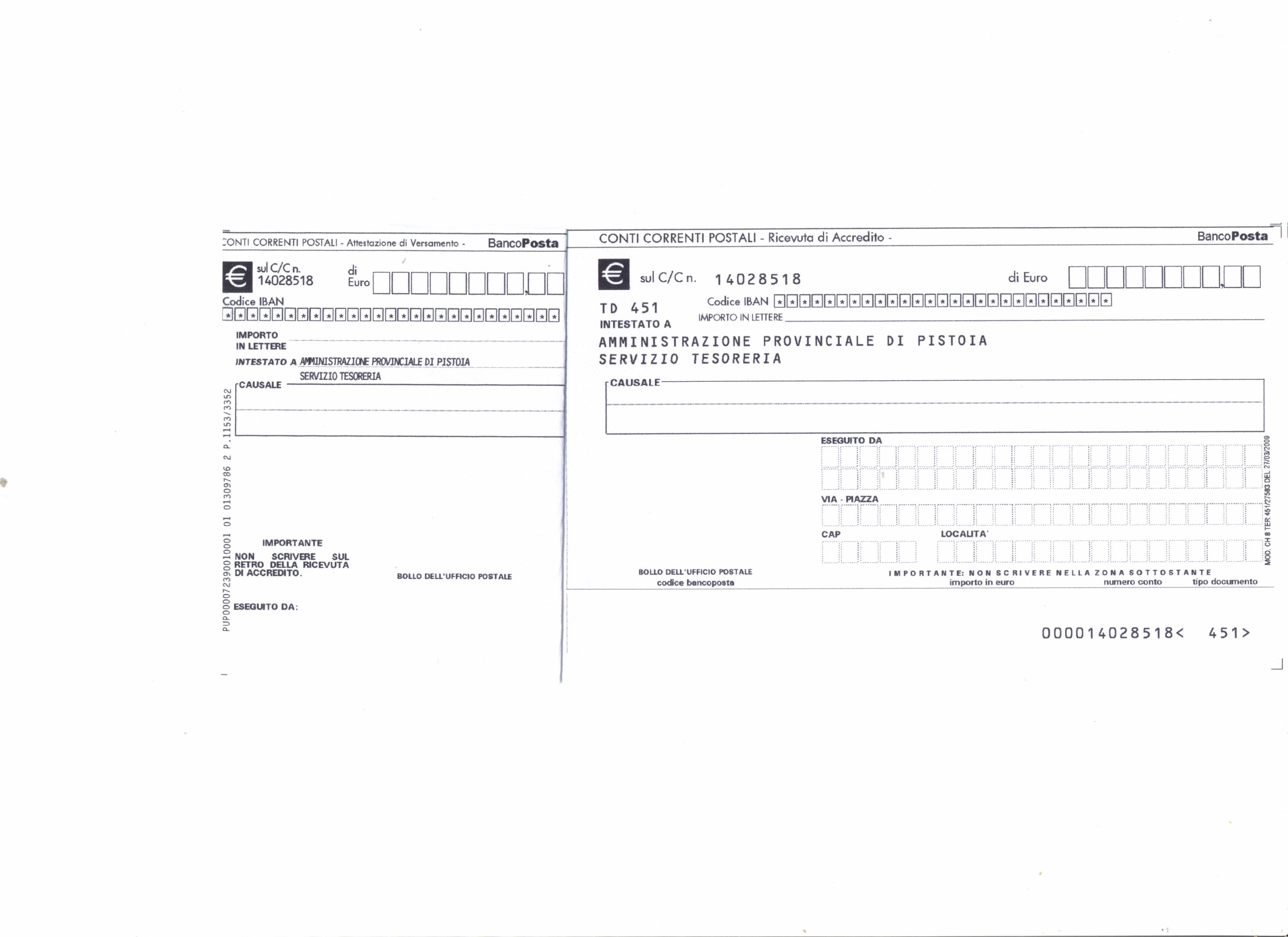 - Bollettino postale per pagamenti COSAP - (CC Postale 14028518)